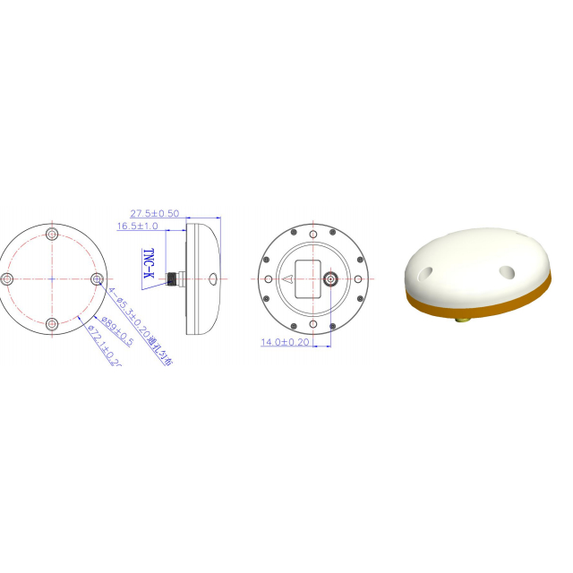 周波数範囲 (MHz) BDS:B1、B2、B3 GPS: L1、L2、L5 GNONASS:G1、G2 Galileo: E1、E5a、E5b ピークゲイン ≥5.5 dBi 偏波 RHCP VSWR ≤2.0 軸比 ≤3dB インピーダンス 50Ω LNA ゲイン 40±2dB 水平カバレッジ角度360° 帯域内平坦度 ±2dB 雑音指数 ≤2.0 位相中心 ±2mm 動作電圧 3.0~12V DC 動作電流 ≤50mA コネクタ MMCX 湿度 95% 結露なきこと 保管温度 -45℃~+85℃ 動作温度 -40℃~+80℃ 重量 ≤130g