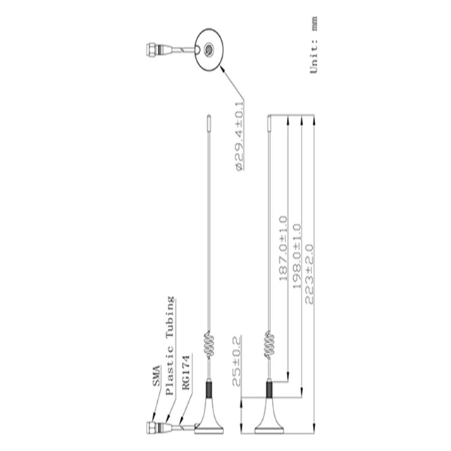 A: アンテナには 3 m の RG174 ケーブルと SMA オス コネクタが付属しています。