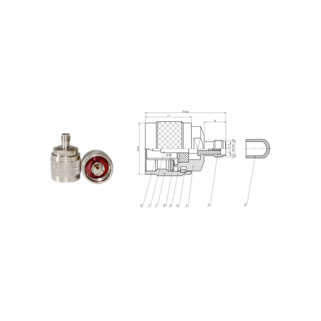 周波数範囲(GHz) 4 インピーダンス(オーム) 50 VSWR 1.10 テスト電圧(最大) 2500 V PIM(3次) ≤-160 dBc @ 2 x 20 W 嵌合サイクル ≥ 500 結合トルク最大 1.7 Nm 推奨結合トルク 0.7-1.1 Nm 温度範囲 -55℃-+155℃ 外部コンタクト 黄銅 CuSnZn メッキ センターコンタクト 黄銅 Ag メッキ ケーブルグループ N/A メッキ CuSnZn 長さ(mm) Ф19*30